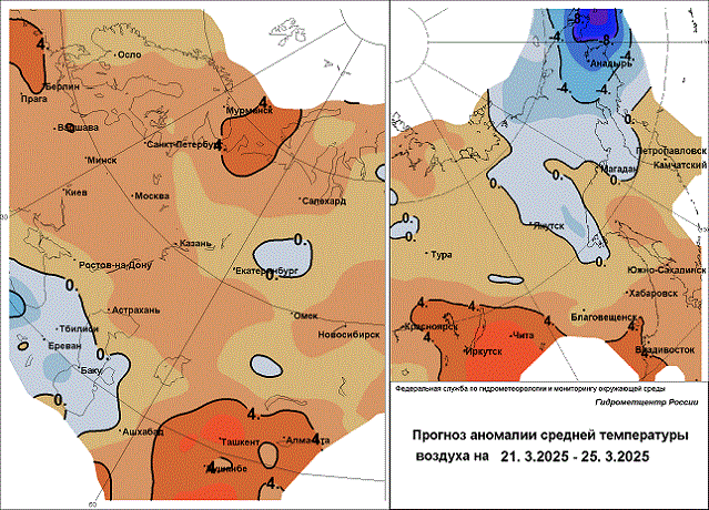 21-23 марта. В Краснодарском крае, Адыгее 21 марта заморозки (температура ночью -3…-1°), 21-23 марта в горах лавиноопасно. В Ингушетии и Чеченской Республике сильный снег, налипание мокрого снега, гололедно-изморозевые явления, в горных районах лавиноопасно. В республиках Северного Кавказа заморозки (температура ночью -3…-1°). В горах Карачаево-Черкесии, Кабардино-Балкарии, Северной Осетии и Дагестана лавиноопасно. В Кемеровской области, Алтайском крае 21-22 марта ветер до 22 м/с, 23 марта сильная гололедица.