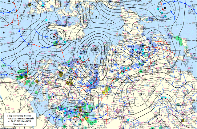 Серия североатлантических циклонов перемещается через акваторию Баренцева и Карского морей в юго-восточном направлении; в течение периода на большей части Уральского региона и Сибири ожидаются осадки, гололедные явления, местами метели при порывах ветра 13-18 м/с, в горных районах до 20-25 м/с.