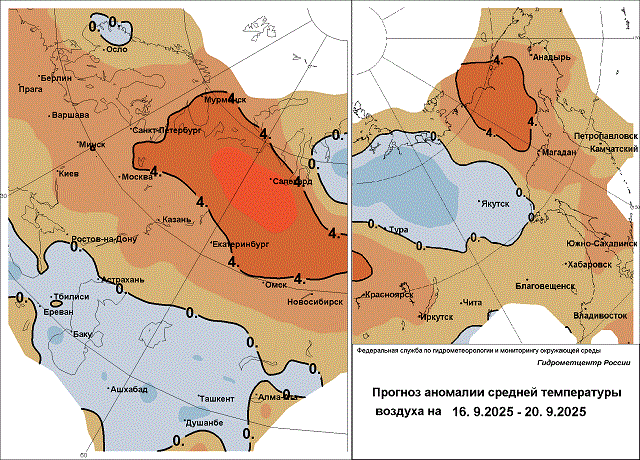 15 - ночью 16 сентября в северных и центральных районах Сахалина намечаются сильные дожди. 17-18 сентября дожди будут небольшими и умеренными. Во вторник и среду воздух в дневные часы прогреется до +15…+20 градусов, а в четверг значительно похолодает до +9 …+14 градусов, усилится ветер до 15-20 м/с. В южных районах Сахалина 16-18 сентября прошумят небольшие дожди, в сочетании с ветром 12-17 м/с. Температура воздуха понизится от +19…+24 градусов 16 сентября до +13…+18 градусов 18 сентября. На Курилах пройдут небольшие дожди, 17-18 сентября на севере – умеренные в сопровождении ветра 10-16 м/с. Температура воздуха днём будет изменяться в пределах от +18…+23 градусов на юге гряды до +9…+14 градусов на севере. 18 сентября на юге островов станет прохладнее на пару градусов.