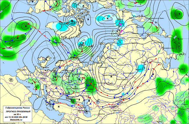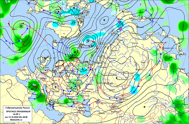 Из южных краёв циклон отправился в Центральные регионы России, и превратил теплую золотую осень в холодную и дождливую. Затем он объединится с другим северным циклоном и образует гигантскую ложбину от Кольского полуострова до Европейского юга, обрушив осадки различной интенсивности. В минувшие сутки сильные дожди, местами с мокрым снегом прошли в Поволжье (в Самарской и Оренбургской областях), в Центральном округе (Московской, Тверской, Смоленской и Калужской областях), в Северо-Западном округе (Псковской, Мурманской областях, Ненецком а.о.) Выпало от 17 мм осадков в Центральных областях до 31 мм в Мурманской области. Сегодня сильный дождь планируется во Владимирской и Рязанской областях, завтра 14 октября пройдёт в Башкортостане в сочетании с ветром 15-20 м/с.