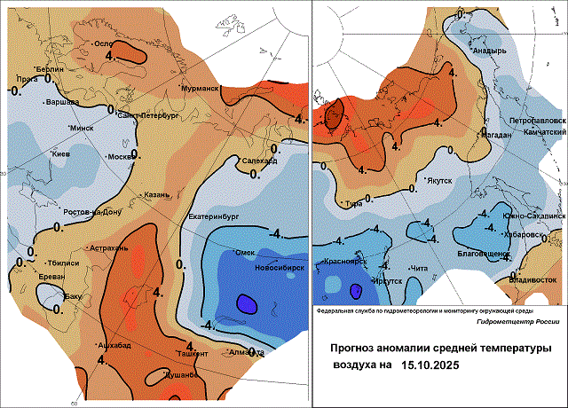 14-16 октября под влиянием циклона и его атмосферных фронтов в Центральном, Приволжском округах, на большей части Северо-Западного округа будут поливать небольшие и умеренные дожди, местами с мокрым снегом. Температурный фон на территории Европейской части России будет близок к климатической норме, но местами в западной половине ниже нормы на 1-2 градуса, в восточной половине на 2-3 градуса выше нормы. Преобладающая температура воздуха в ЦФО составит ночью -1…+5 градусов, днем +1…+8 градусов, на юге до +11.