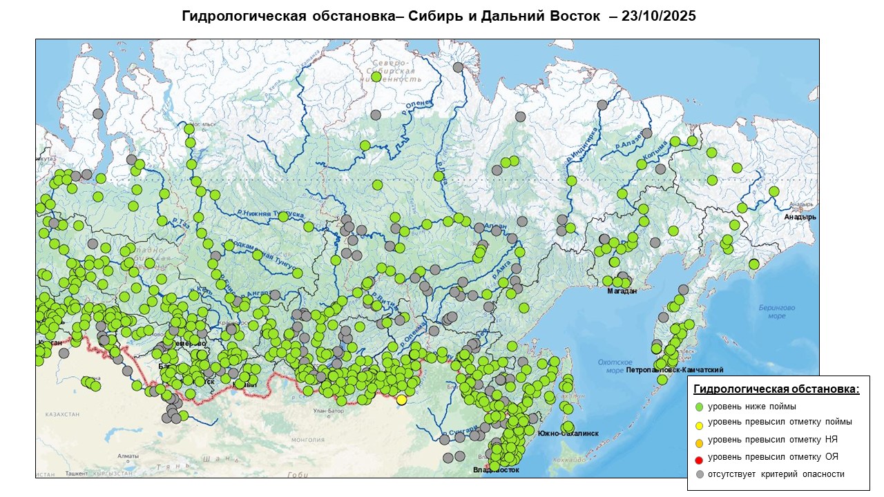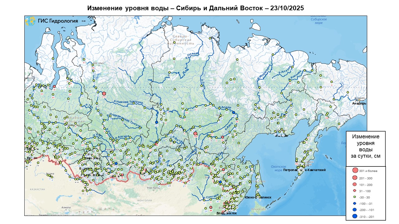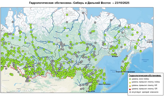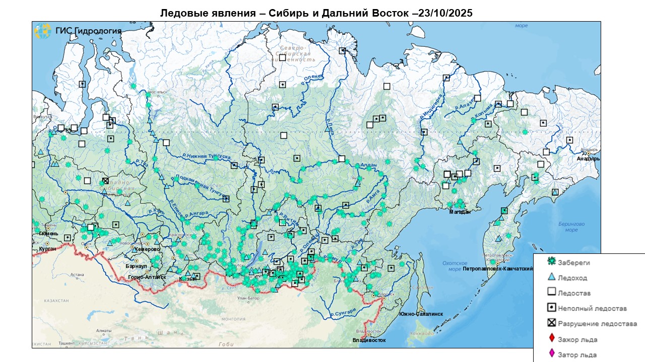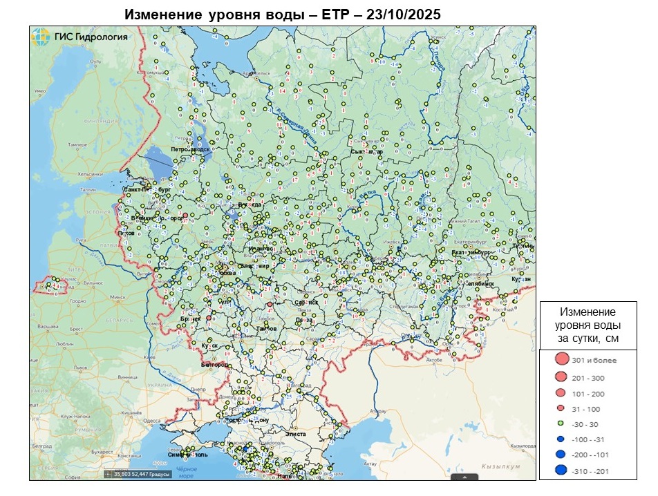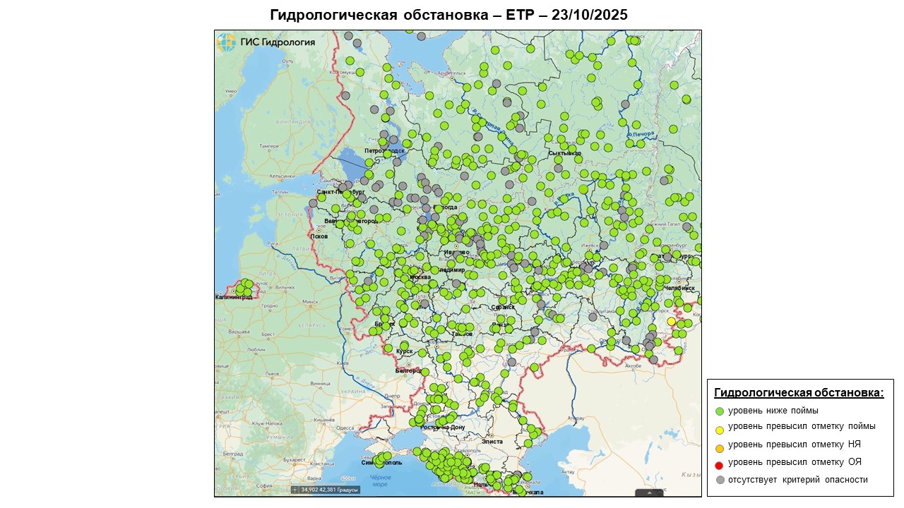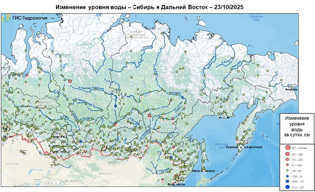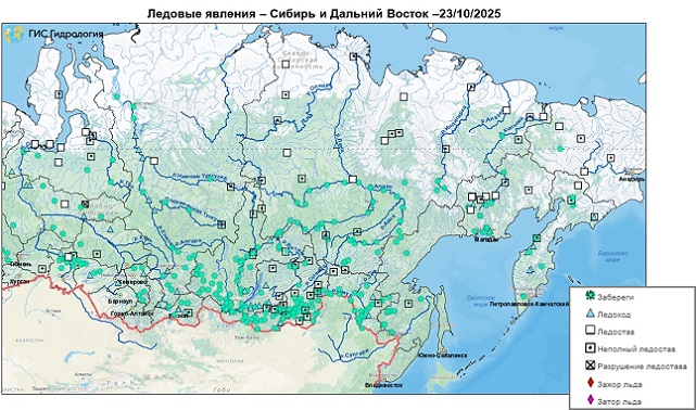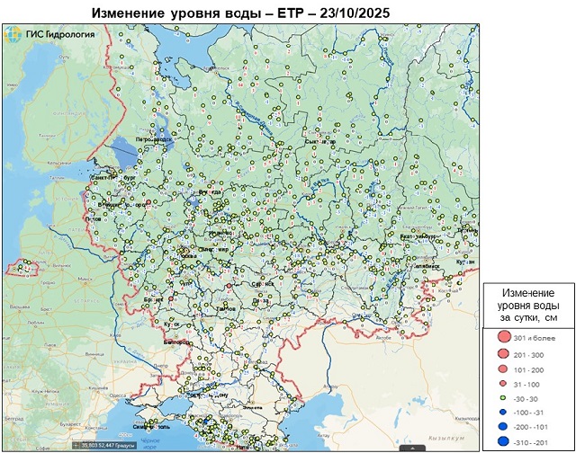 Неблагоприятные и опасные явления на реках, озерах и водохранилищах Российской Федерации по состоянию на 23 октября 2025 г.
