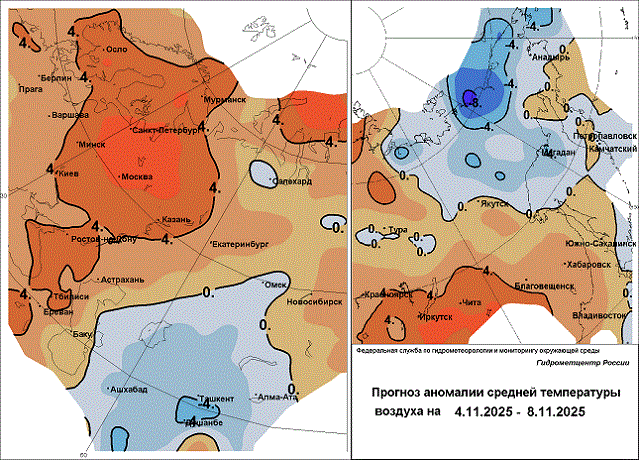 4 ноября. Облачно. Ночью небольшой, местами умеренный дождь, температура в Москве 6...8°, по области 3...8°, днем в Москве 8...10°, по области 5...10°. Ветер юго-западный и западный 6-11 м/с.