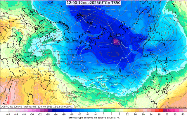 Температура воздуха на высоте 850 гПа
