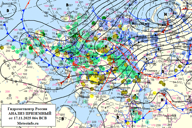 В понедельник, 17 ноября, облачно. Осадки, (снег, переходящий в дождь). Местами гололед, налипание мокрого снега. Tемпература в Москве 3...5°, по области 1...6°. Ветер южный, юго-восточный 5-10 м/с. Местами гололедица.