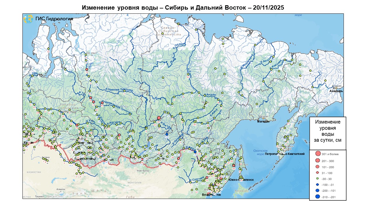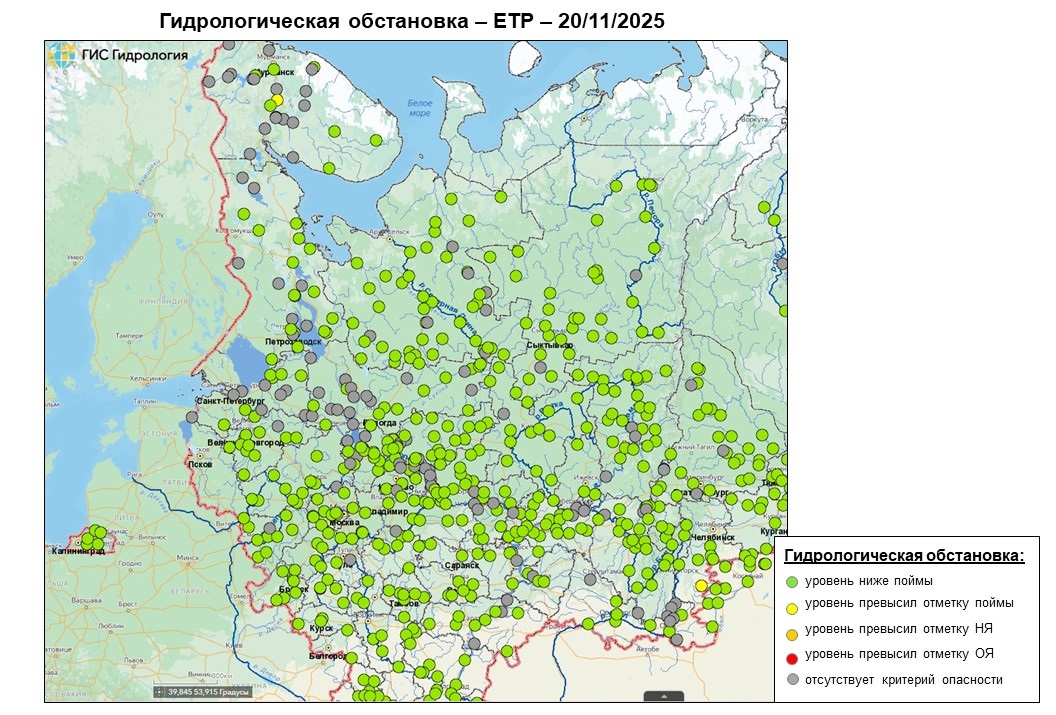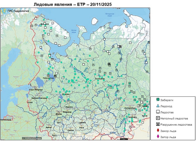Неблагоприятные и опасные явления на реках, озерах и водохранилищах Российской Федерации по состоянию на 20 ноября 2025 г.