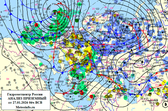 Количество осадков за прошедшую ночь (21 ч. 26-го - 9 ч. 27-го января)