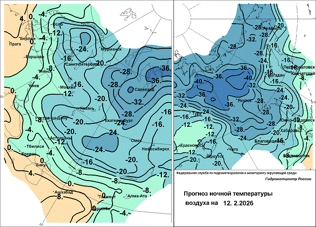 В Республике Тыва 10-11 февраля осадки не предвидятся. Самая морозная  ночь ожидается 10 февраля -27…-32, местами до -37  градусов, 11 февраля прогнозируется  наиболее низкая максимальная температура воздуха -15…-20 градусов. 12 февраля начнётся небольшой снег, усилится ветер до 15-20 м/с, а температура воздуха повысится ночью до -23…-28, местами -15…-20 градусов, днём составит -3…-8, местами -13…-18 градусов.