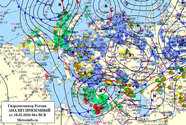 Виновник предстоящих снегопадов во многих регионах Европейской России, южный циклон, поддерживающий свою энергию на тепле и влаге Средиземного и Черного морей, выходит на Русскую равнину, оттесняя морозный антициклон за Урал. Центр циклона пройдет по западной половине ЕТР, направляясь на север к Кольскому полуострову. Атмосферные фронты циклона вызовут ухудшение погодных условий на юге ЕТР, где пройдут сильные дожди, мокрый снег, затем зона фронтальных уже снегопадов и метелей охватит и Поволжье. 19-20 февраля во власти снежного циклона будет находиться северо-запад ЕТР.