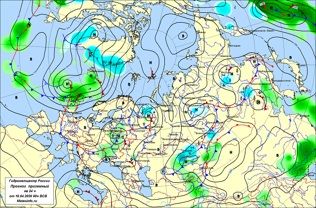15 апреля Чукотский автономный округ находился под влиянием арктического антициклона, существенных осадков не наблюдалось, но ветер усиливался до 23 м/с. Ослабевающий морской циклон доставил небольшие осадки в виде снега и снега с дождем в Камчатский край, на север Курильской гряды; в Магаданской области отмечался сильный снегопад, оставивший до 12 мм осадков, ветер достигал 21 м/с, на Курильских островах - 22 м/с. 15 - ночью 16 апреля под влиянием континентального циклона сильный снег отмечался в Забайкальском крае и на юге Якутии, выпало до 7-16 мм осадков; в Амурской области прошли осадки в виде снега, мокрого снега, дождя, зарегистрировано налипание мокрого снега с диаметром отложения до 31 мм.